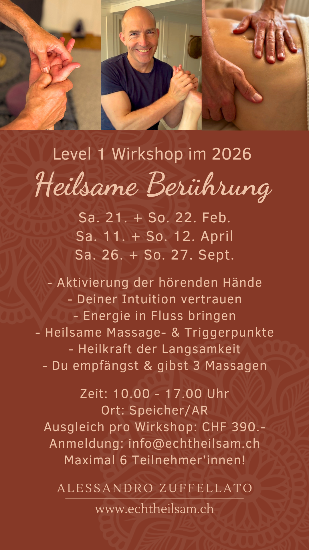 Anmeldung: Alessandro Zuffellato, 079 262 62 52, info@echtheilsam.ch